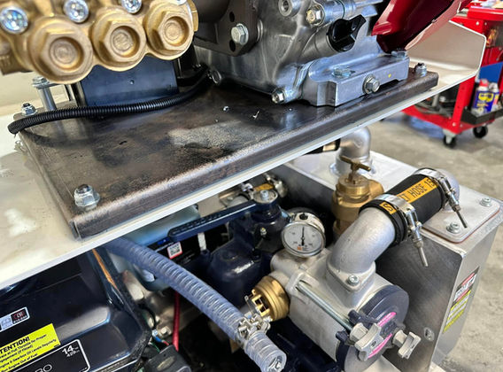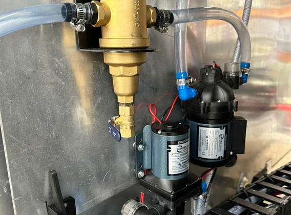 Trolley designed to enable this piece of production machinery to be easily moved out of the temperature controlled room to be cleaned and for maintenance.